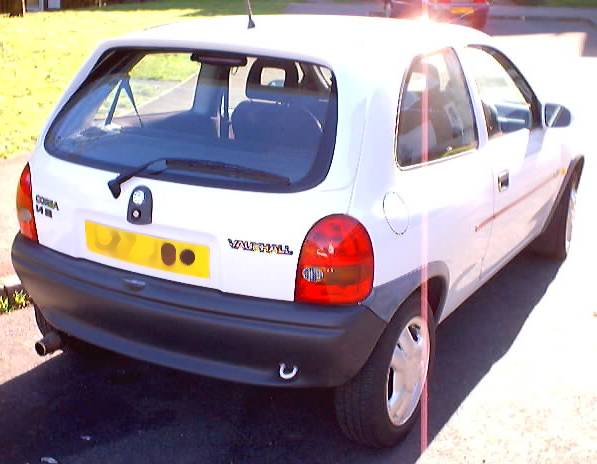 This is my beloved Corsa Sri! Ever since i got interested in cars i have always wanted and dreamed of owning my own Vauxhall Corsa Sri! On the 30th October 2001 i brought one and i love it!! I will not be modifying it until after Christmas due to the fact that i have spent all my money on buying it and i'm in debt! But as soon as i change anything you will see it here! If you have any suggestions for what i should do to my car please feel free to e-mail me!! ENJOY THE SITE!!